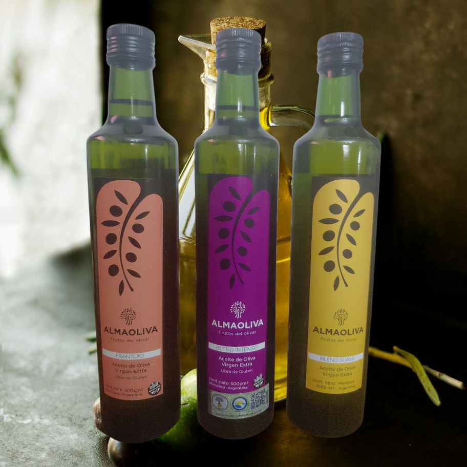 Aceites Blends (en orden de intensidad): 1 botella de BLEND SUAVE (frutado suave) + 1 botella BLEND INTENSO (frutado medio-intenso, con notas amargas y picantes)